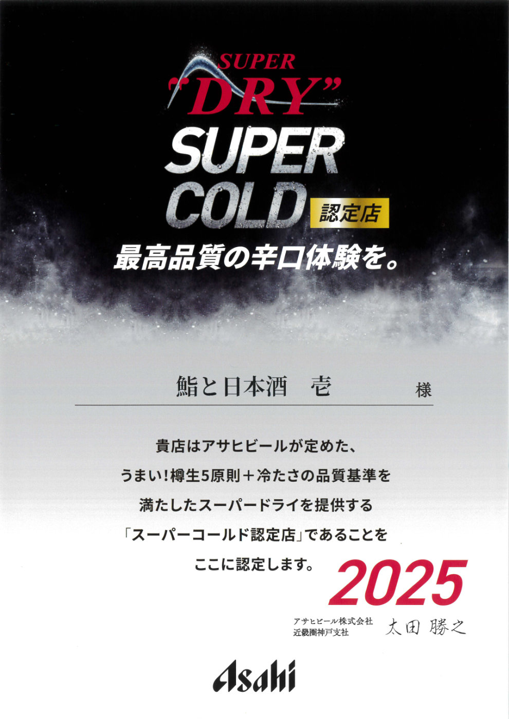 当店は「スーパードライ SUPER COLD 認定店」です。